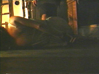 The torturer watches as the redheaded woman