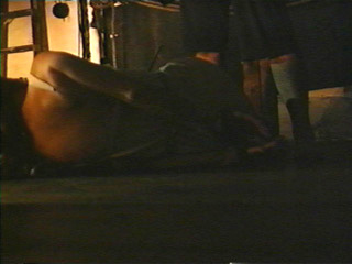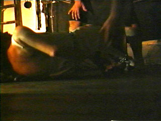 he pulls her ankles to join them with the chains