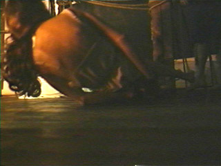 on her hands. Her spine arches backwards and