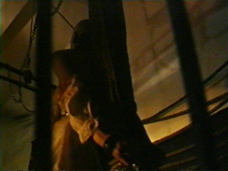 The torturer aims the lash across the nun's