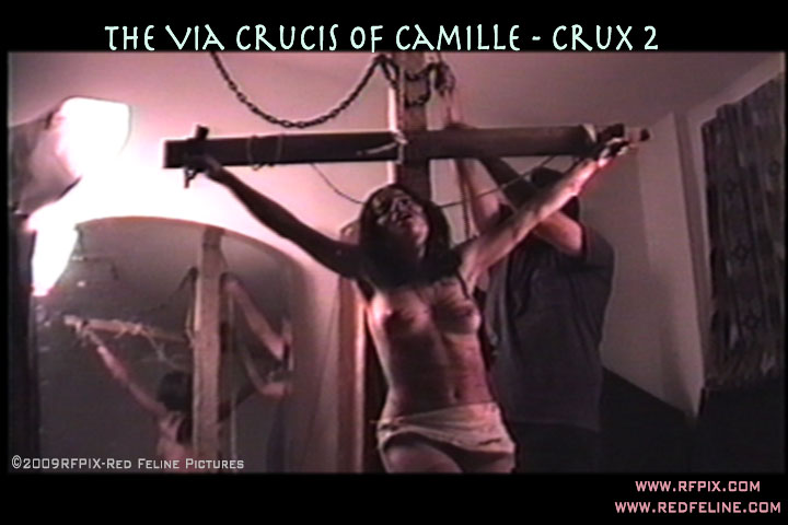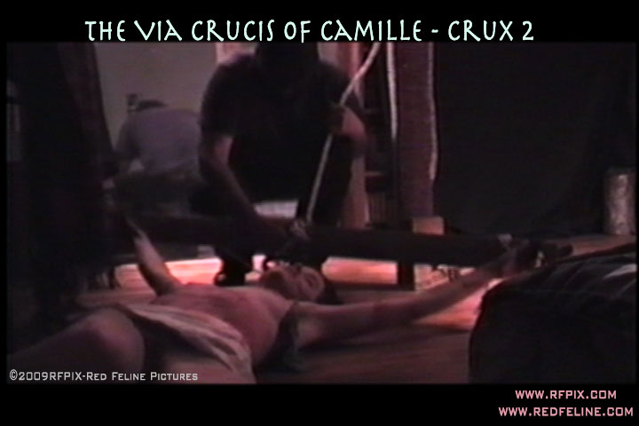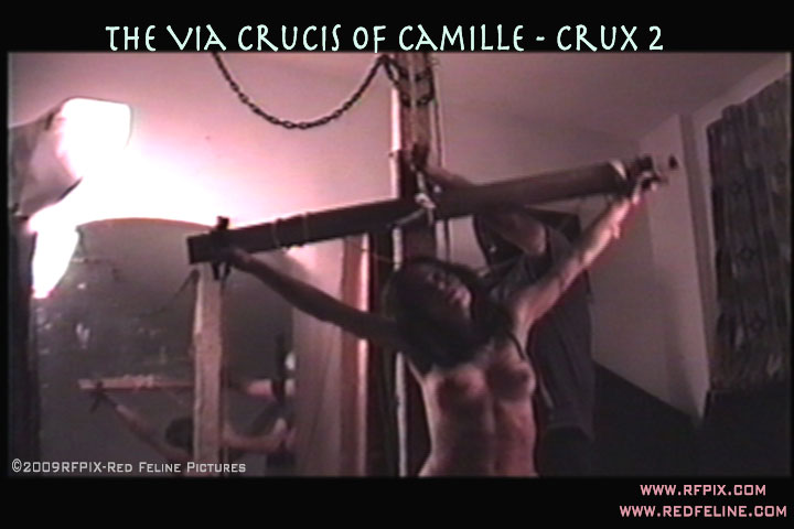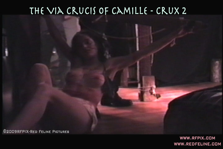 her ankles nailed to the crossbar, her feet
