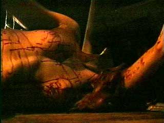 blood dripping down from her back to her waist.