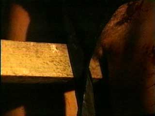 by the whip striking her breast, hitting the nail,