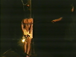 as it flew to the woman's back. The crack of the first lash